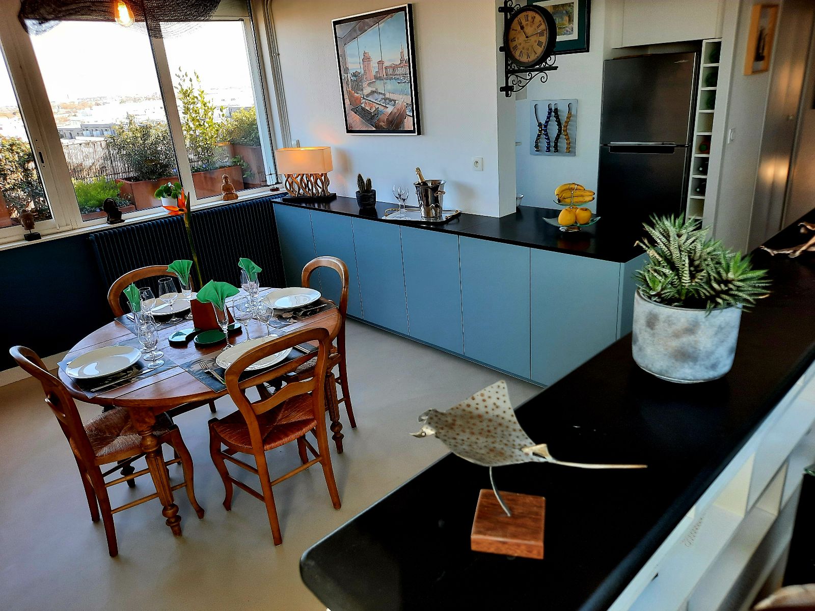 Bed and breakfast located 10 minutes walk from the hyper-center of La Rochelle. Apartment with panoramic terraces. View of the town of Rocjhelle and the port of Minimes.