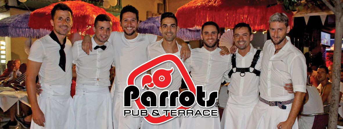 El bar atrae a todos los grupos de edad. Jóvenes de moda mezclándose con los lugareños y sus fans durante la "semana de los osos". El bar está lleno todos los días y el personal es muy amable. Parrots es uno de los pocos locales de Sitges que ofrece servicio en mesa.