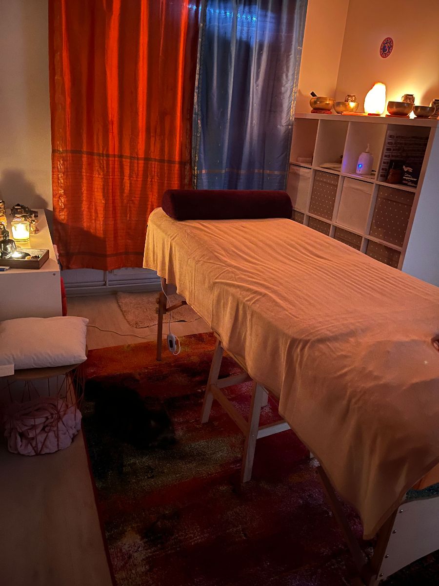 Las sesiones pueden durar entre una hora y 1h30 dependiendo de tus necesidades. También tienes la opción de darte una ducha después del masaje. También utilizo cuencos tibetanos en tu cuerpo haciéndolos razonar o cantar.