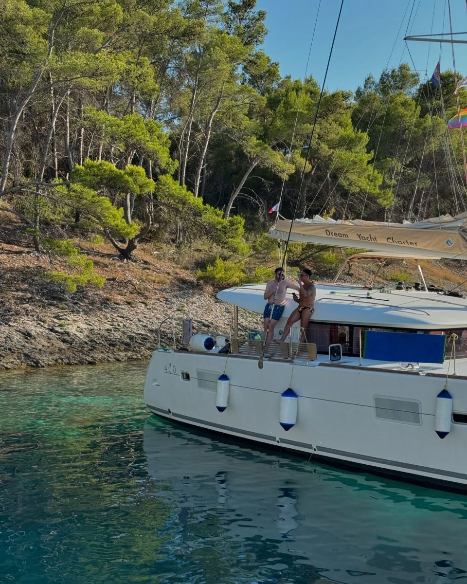 Navegamos en un Lagoon 400 de 12 metros y un Fountaine Pajot de 13 metros. Ambos cuentan con cuatro camarotes dobles con baño privado y dos pequeños camarotes individuales en la proa. Para ver la distribución, consulte la imagen de la izquierda en el centro de esta página. Si viaja solo, compartirá un camarote con cama doble, con sábanas separadas, como en la imagen. Si viaja solo y no desea compartir camarote doble, disponemos de dos pequeños camarotes individuales para la tripulación, un 30 % más económicos, en la proa, accesibles solo desde la cubierta. Vea las fotos. O bien, puede reservar un camarote privado con cama doble y baño privado (si está disponible). Si viaja en pareja, reserve dos plazas en "camarote doble compartido para una persona".