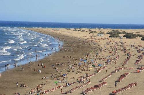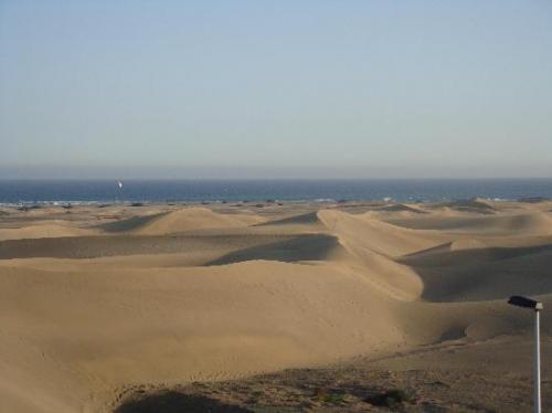 Para tener acceso a las dunas y la playa, se puede pasar por el faro de Maspalomas (El Faro) o el Riu Palace (gran edificio blanco), al pie de la Avenida de Tirajana.