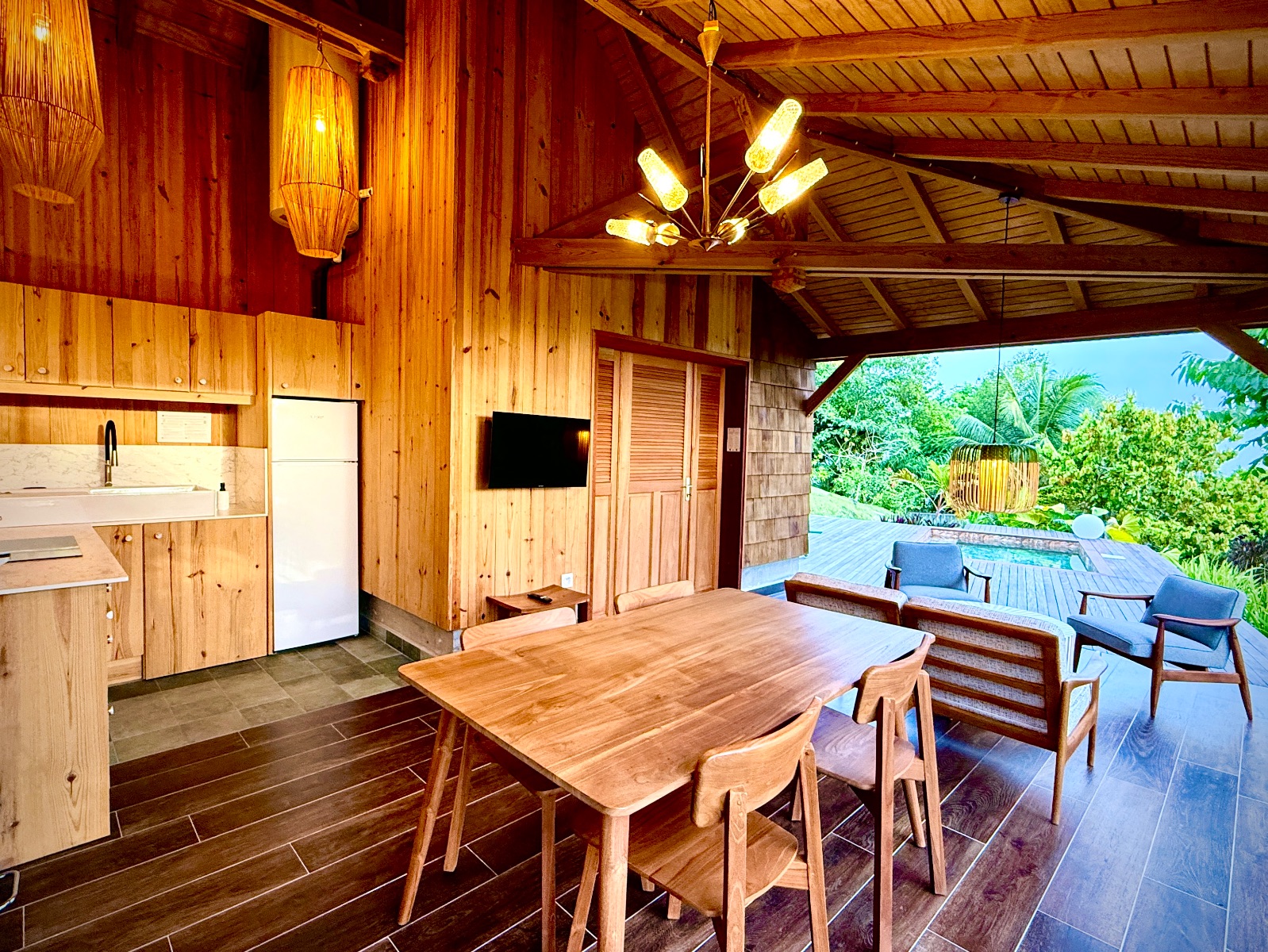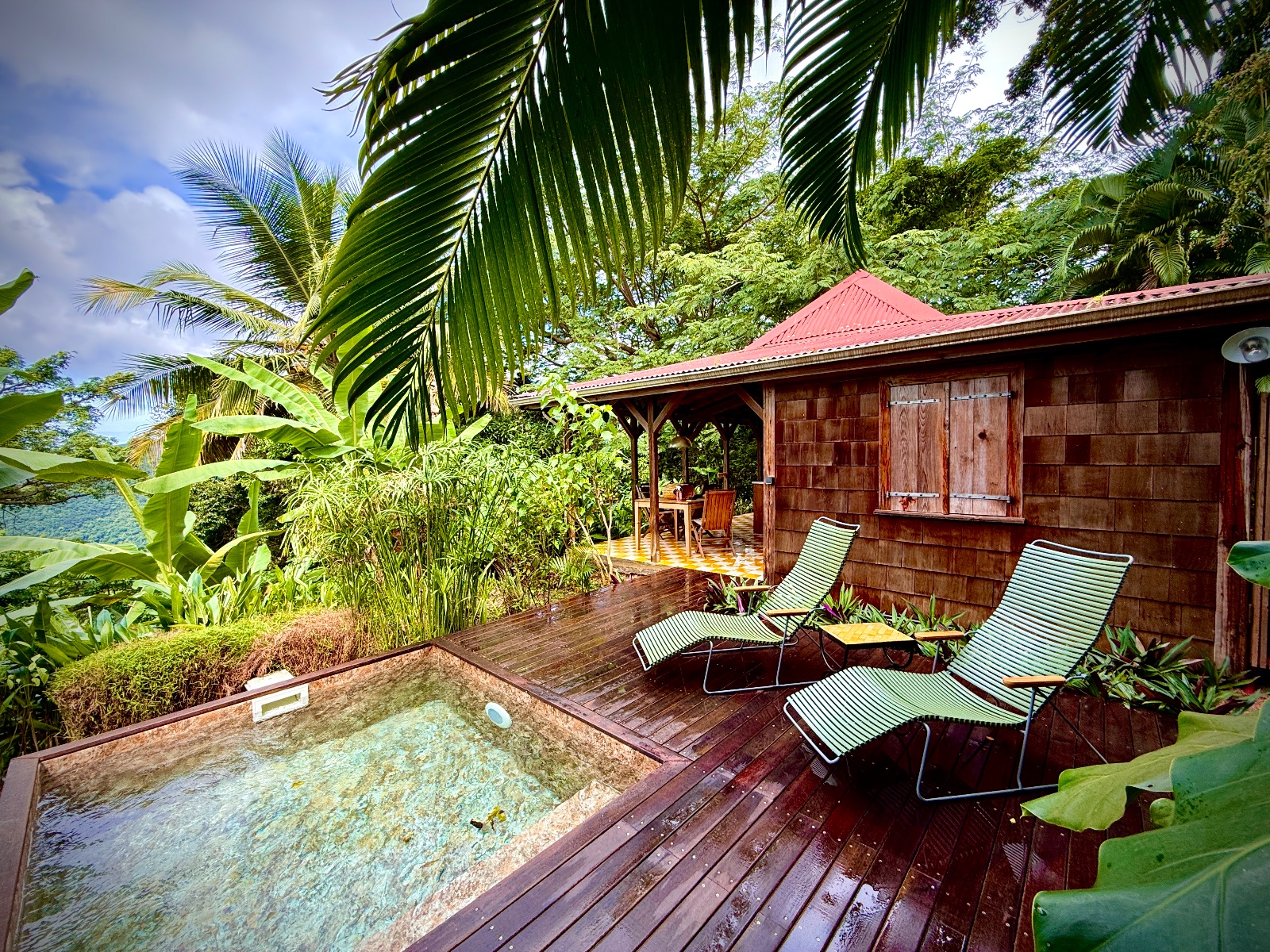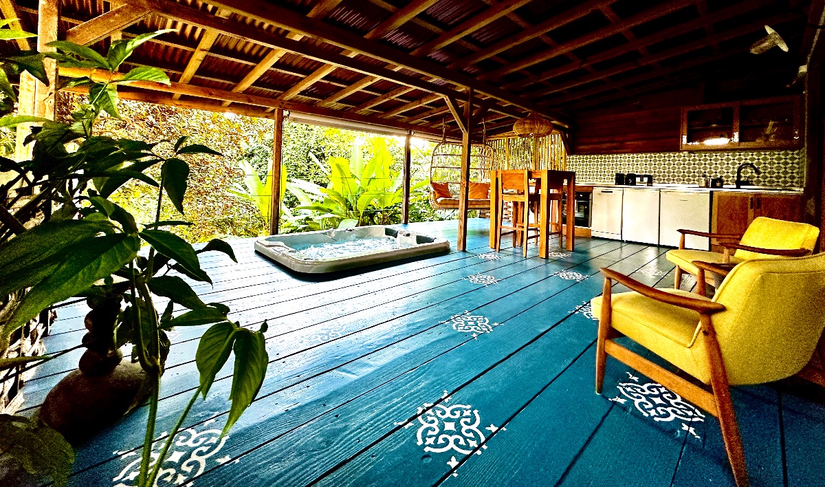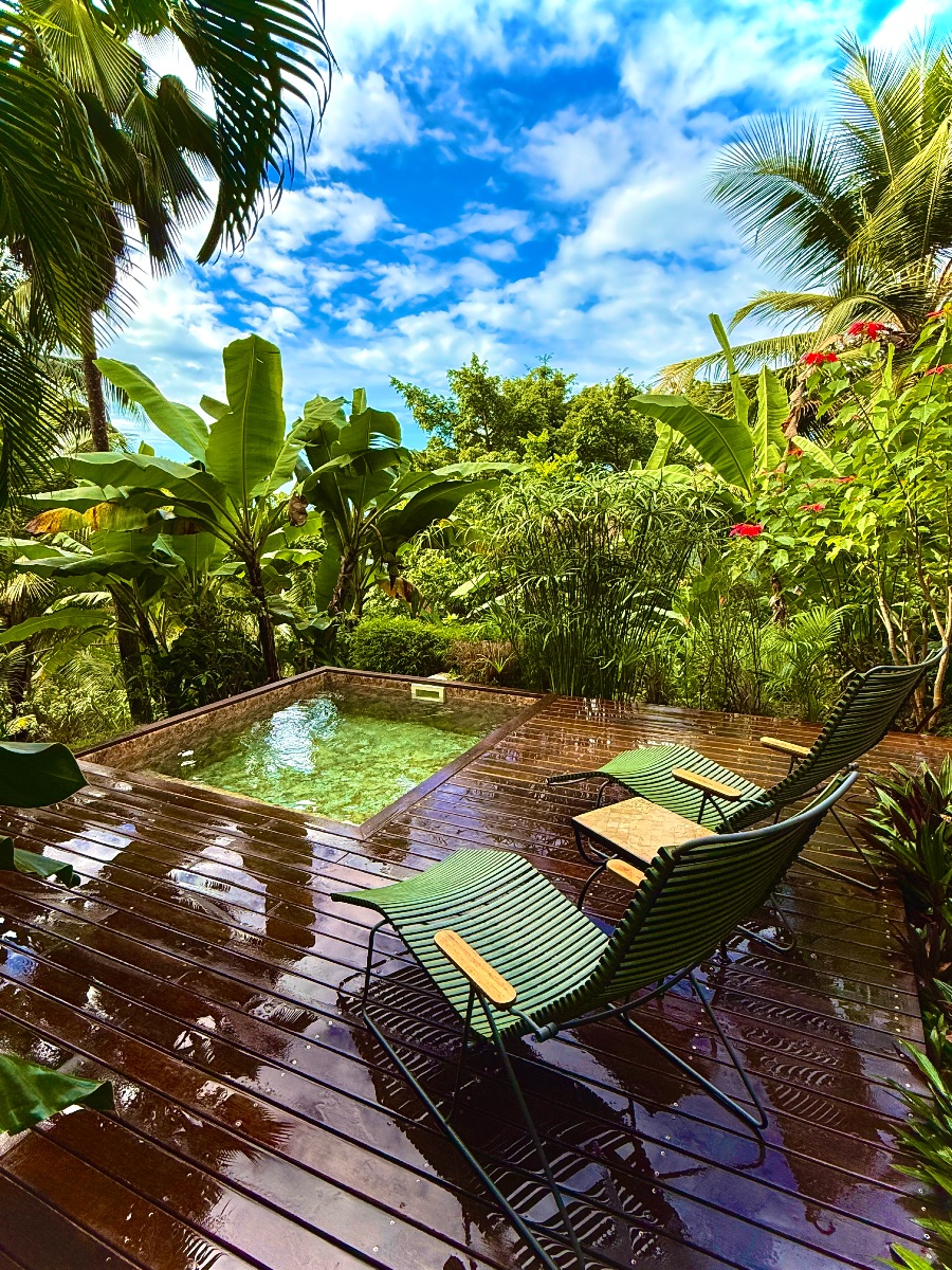 - Selon l’écolodge : mini-piscine privée ou spa pour se délasser à toute heure.