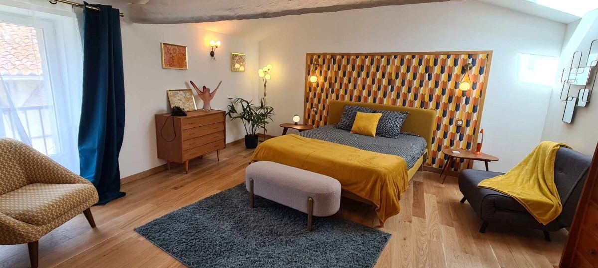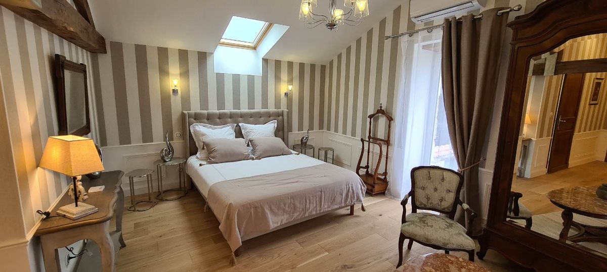 *La Suite élégante (45 m²) Lit 160 et canapé lit 140 avec sa salle d'eau privative à l'étage de l'ancienne écurie.