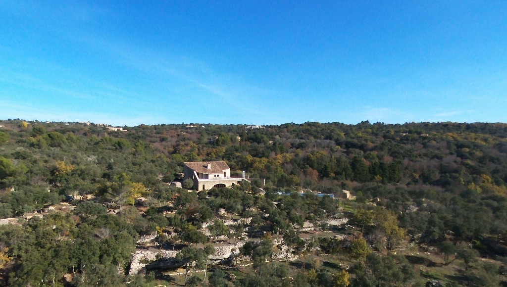 Il se compose d'une maison d'architecte, d'une piscine (de 16m, chauffée, et à débordement), de quelques bories, et d'un jardin en restanques agrémenté de plantes provençales, d'arbres fruitiers, et d'oliviers sur plus de 3 hectares.