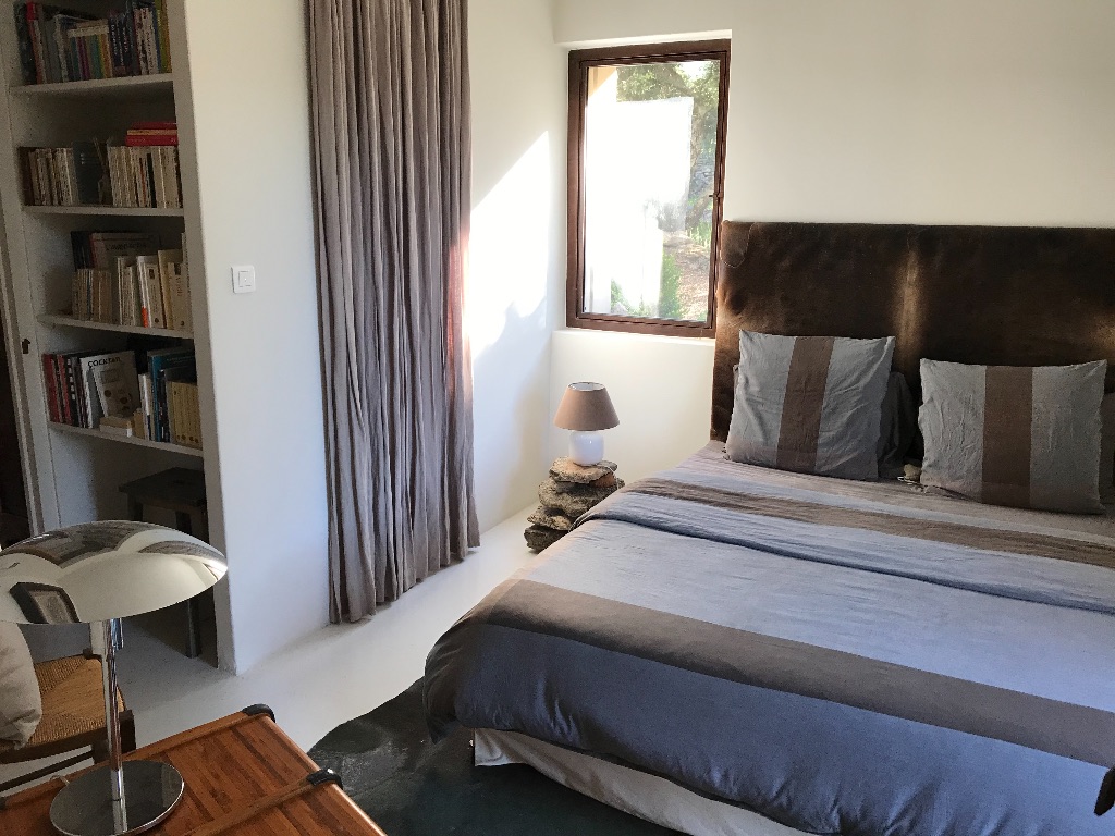 - La chambre « Monts du Vaucluse », exposée nord ouest, dispose d'un lit d'1,40m, d'une salle de douche & wc, et de transats & d un coin repas extérieur privatifs. Vous disposerez de 18m2 privatifs environ. Wifi & Climatisation.