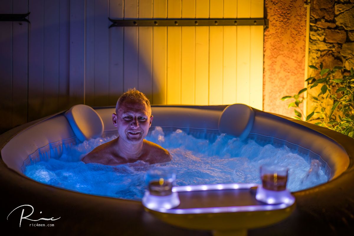 Jacuzzi / Spa pour 1 à 4 amis dans le jardin. De juin à août, une petite piscine est installée. Terrasse couverte et divers sièges dans le jardin. La cuisine, la salle de Bain avec douche, le salon et la salle à manger ainsi que la télévision, la terrasse et le jardin sont partagés. Internet via WLAN gratuit. Parking clôturé gratuit. Le petit déjeuner français est inclus.