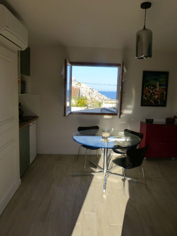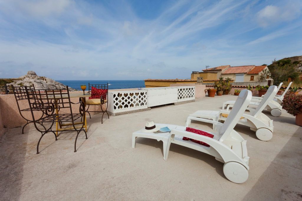 Le studio-Suite Turquoise avec kitchenette se situe au 2e étage de la maison d'hôtes avec un accés indépendant. Il dispose d'une terrasse privée qui donne sur le Parc National des Calanques, elle est équipée de mobilier pour les petits repas sous la pergola. Cet appartement a également un accés direct sur le roof top ou solarium où l'on peut profiter chaque soir d'un magnifique coucher de soleil sur les calanques.