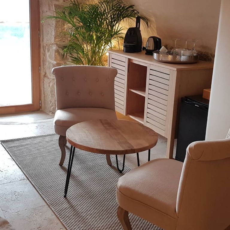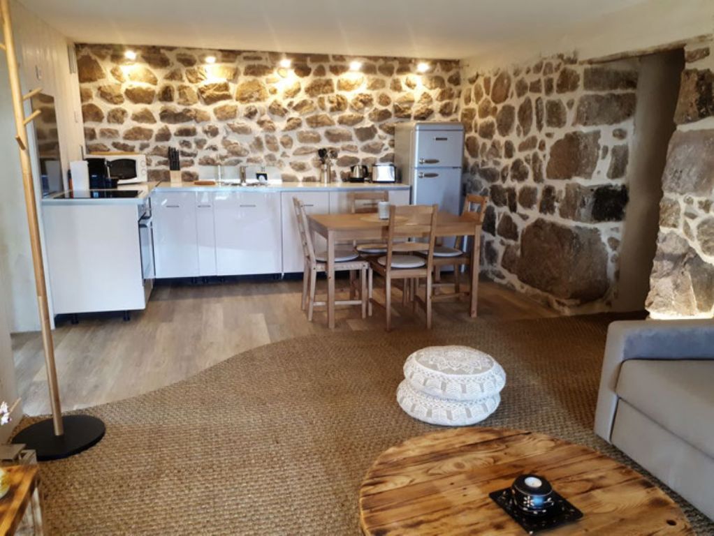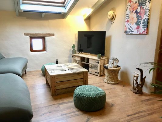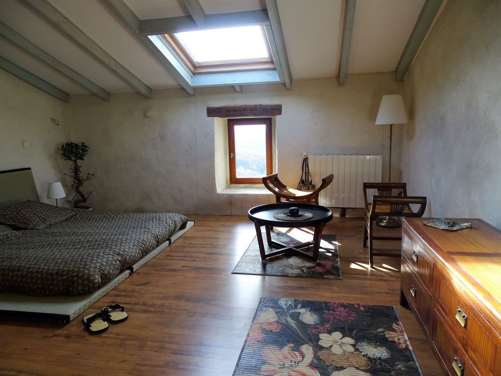 La partie inférieure de la maison a été réhabilitée en 2020 pour créer le gîte et la chambre, en préservant les matériaux naturels.