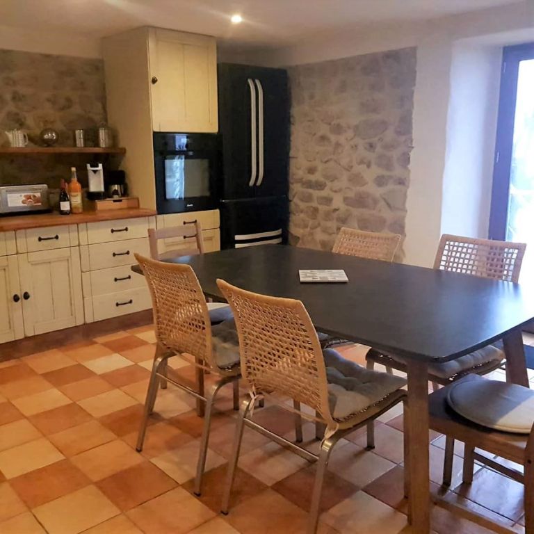 La maison date de 1800, construite à flan de colline sur 3 niveaux, en pierres de taille typiques de l'Ardèche verte.