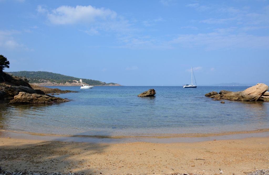 Nichée au creux d'une petite crique superbe, délicieusement ombragée par quelques arbres, la plage est protégée par des rochers recouverts de plantes méditerranéennes