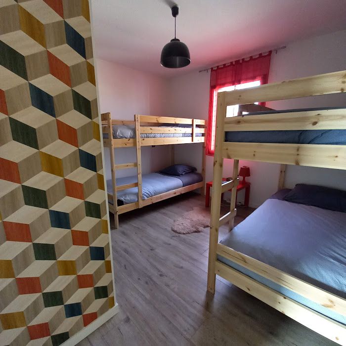 3 chambres (capacité maximum : 8 personnes) situées à l'étage de la maison (2 chambres à grands lits de 160 et 1 chambre dortoir partagé avec 4 lits de 90 à étages).