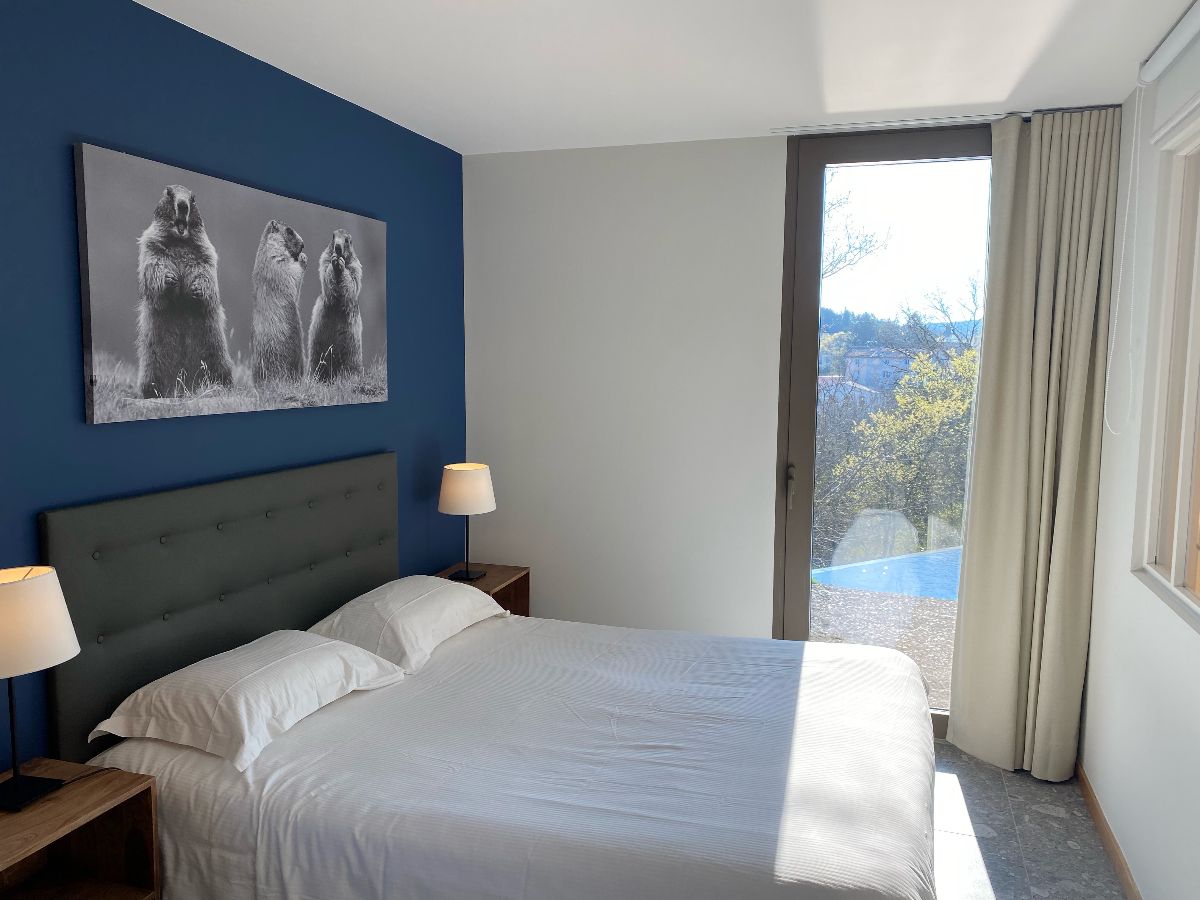 Face à Balazuc, l'un des «plus beaux villages de France», non loin des gorges de l’Ardèche et de la grotte Chauvet, Luc, ancien propriétaire du château de Balazuc, vous propose de poser vos valises dans son gîte classé 5*. Un havre de paix, niché au rez-de-jardin de leur maison à l'architecture contemporaine. Vous profiterez d’une grande terrasse couverte, d’un jardin planté de chênes et de la piscine des propriétaires, un bassin à débordement chauffé avec une vue à couper le souffle ! Naturistes bienvenus.