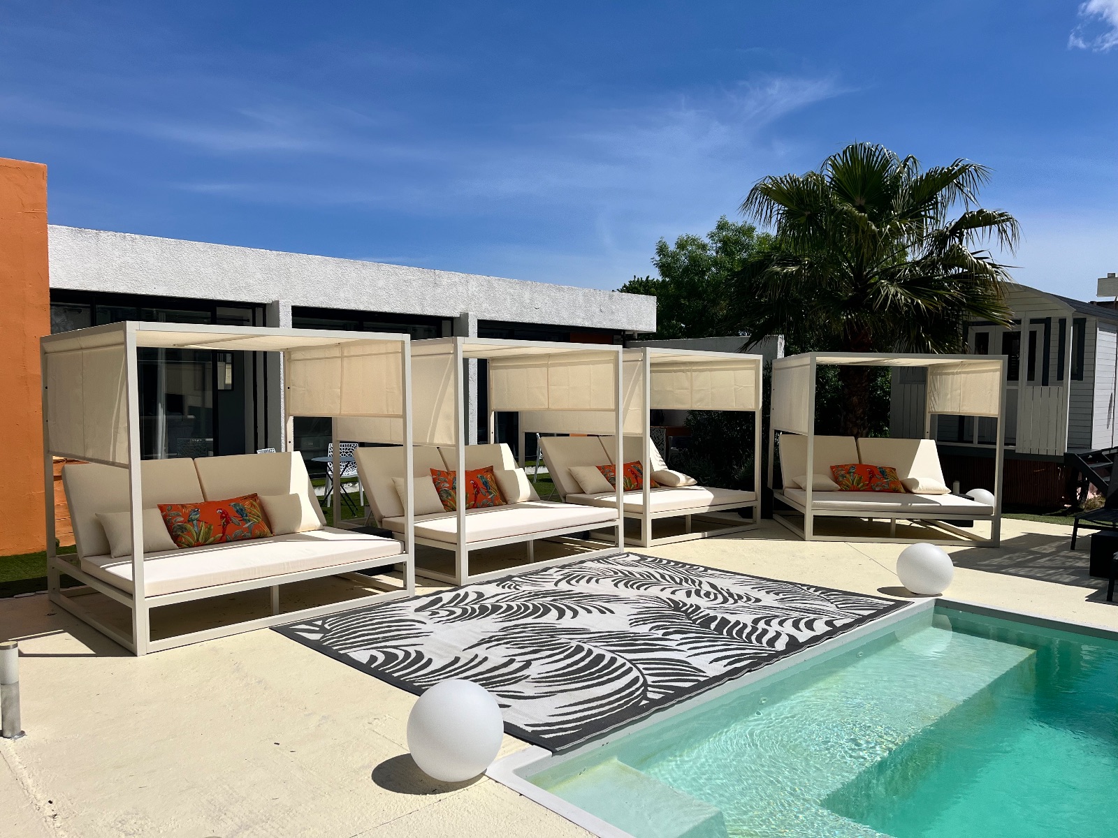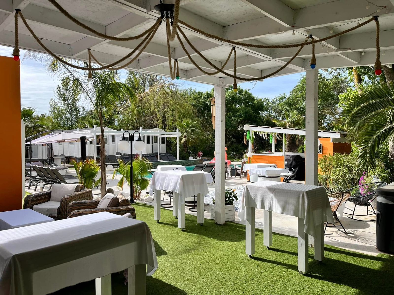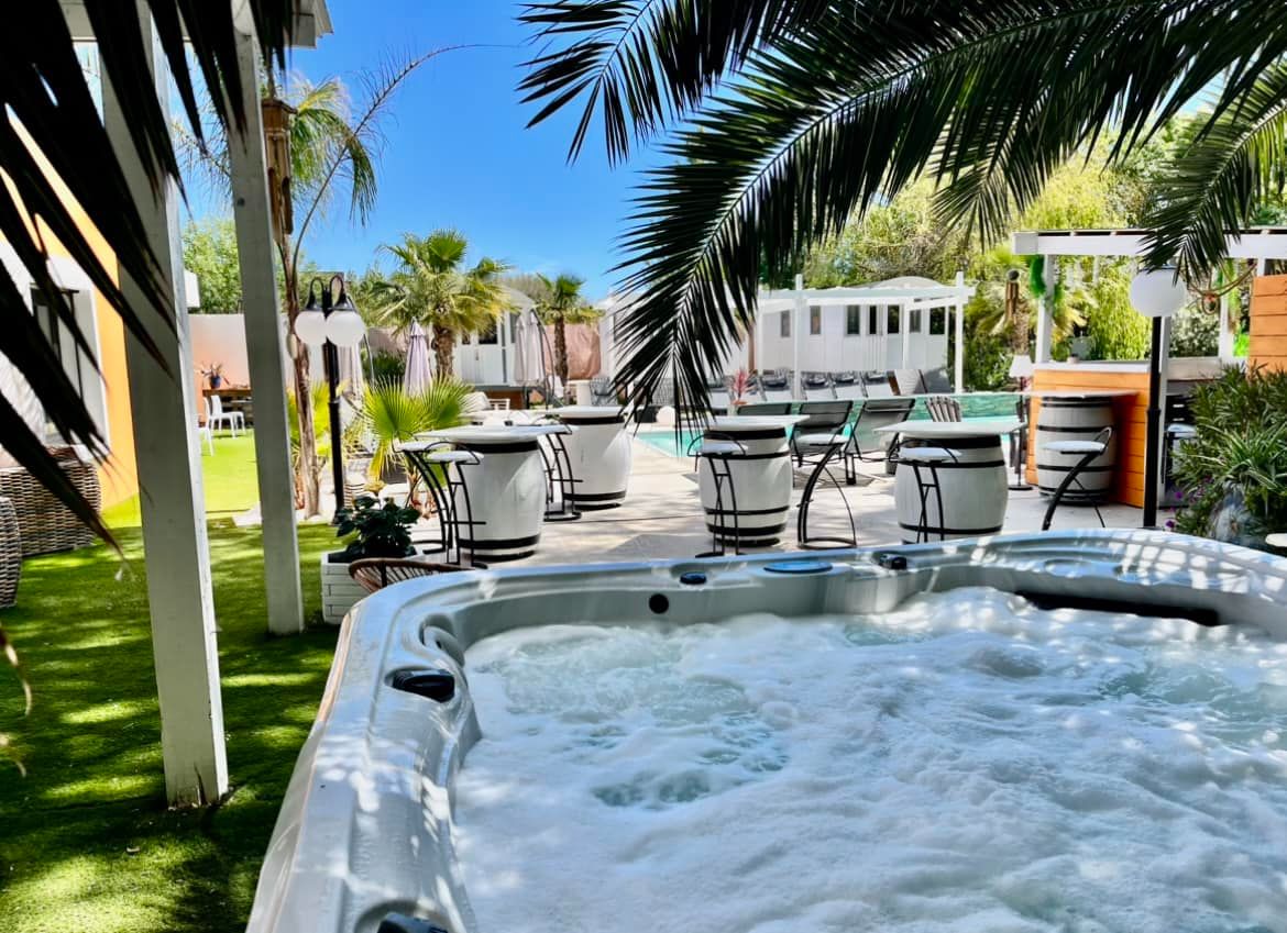 Vous profiterez de la piscine chauffée de 10m/4m, d’un jacuzzi chauffé de 5 places, d’un parking privé sécurisé gratuit à l’intérieur de la propriété, d’un bar ouvert dès le midi jusqu’au soir et d’une restauration rapide les midi uniquement.