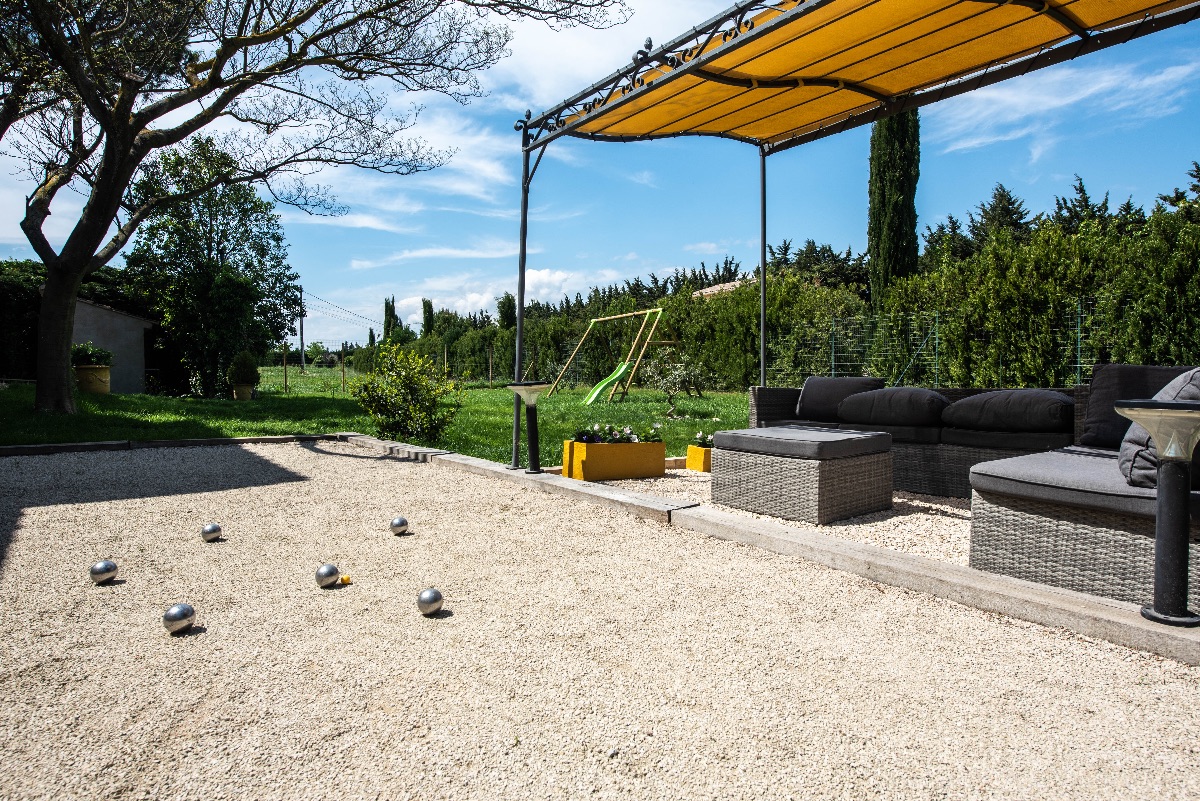Aux portes d'Avignon, en campagne, nous vous proposons notre suite créée récemment avec son entrée indépendante au calme des oliviers. Venez vous balader, vous reposer, profiter de notre grande piscine chauffée ( à partir du 1er mai ) avec sa plage immergée et si cela vous tente pourquoi pas une partie de pétanque ! Repos et bronzage sans crainte des piqures de moustiques grâce à nos bornes écologiques..