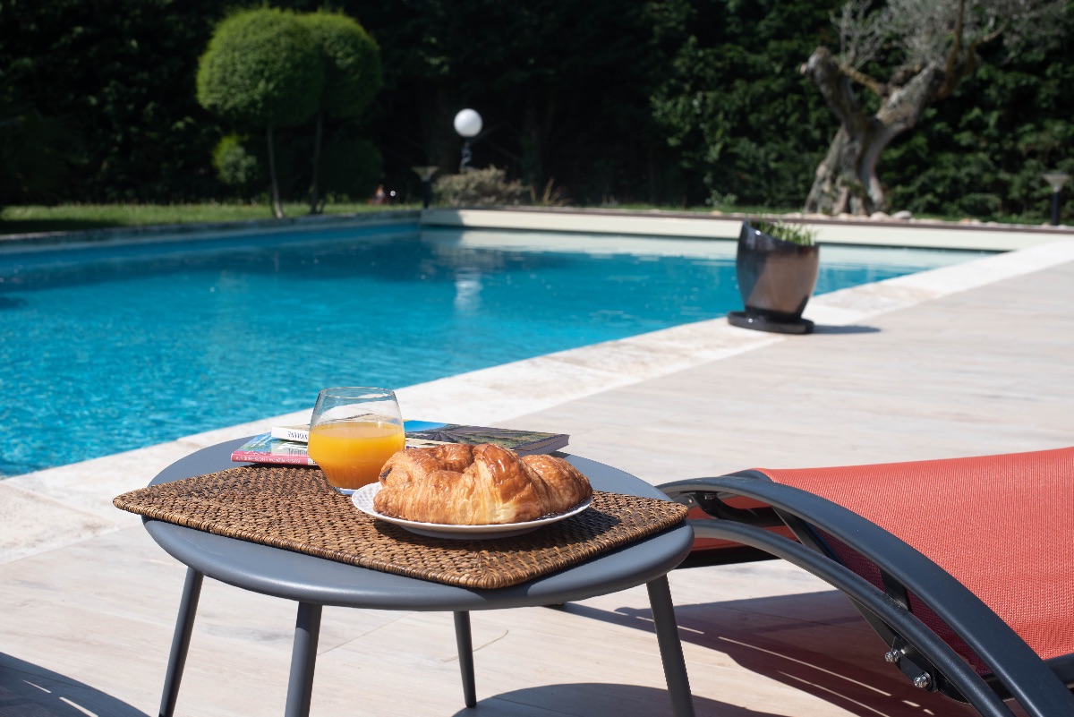 Le petit déjeuner est frais et varié selon vos envies et vous est servi sur votre terrasse privée ou si vous préférez sous la paillote à la piscine.
