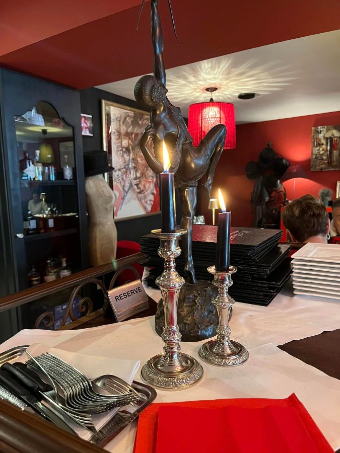 Le restaurant dispose d'une terrasse extérieure l été et un chalet devant en hiver. Notre carte évolue au grès des saisons et change tout les trois mois, avec des suggestions de temps à autres ..... Le restaurant est d une ambiance chalhereuse et sur le thème du cabaret Parisien, car nous avons beaucoup bourlinguer à Montmartre ..... Nous étions très proche de Michou. au plaisir de vous recevoir 🥂🥂🥂🥂🥂