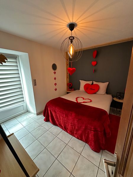 La suite Love you est un suite romantique de 50 m² pour 2 à 4 personne. Elle offre une entrée indépendante avec boîte à codes pour une autonomie totale. Idéale pour une escapade en amoureux près de Châtellerault, elle comprend une pièce de vie avec salon, cuisine équipée, une chambre avec terrasse privative, une salle de bain moderne avec miroir connecté et un espace balnéo avec SPA et sauna (accés privatisée à partir de 19h)