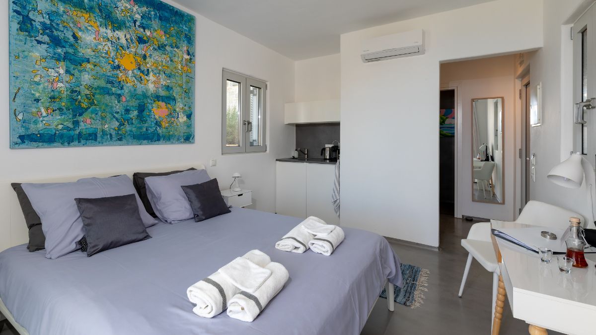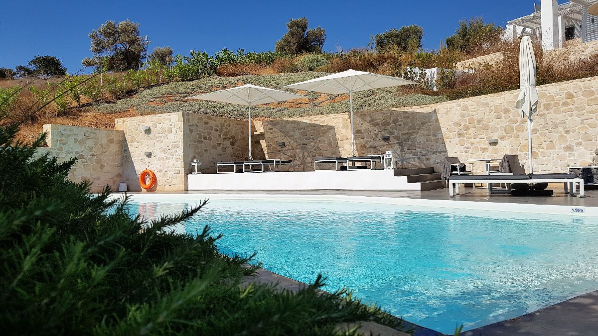 Vous pouvez louer un studio pour 2 avec piscine commune, la villa pour 4 avec piscine privée, ou l'ensemble du resort, en exclusivité pour un groupe de 12 personnes. Piscine chauffée, WiFi, climatisation, forfait petit-déjeuner à l'arrivée, boissons au coucher du soleil deux fois par semaine et service quotidien inclus.