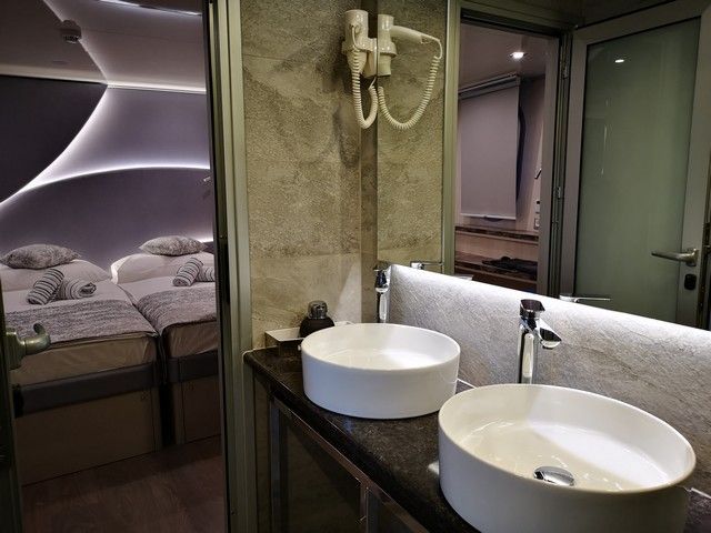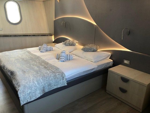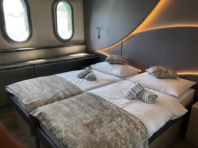 Ce yacht moderne et raffiné dispose de 18 cabines spacieuses, toutes équipées d’une salle de bains privative et des commodités les plus récentes. Avec une capacité maximale de 36 passagers, vous profiterez d’une ambiance chaleureuse et conviviale, propice aux belles rencontres et aux moments de détente.