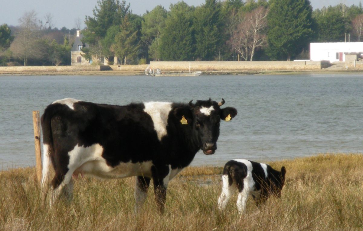 La maison est dans un ancien hameau, la propriété s'étale jusque dans les prés salés en bordure de la Ria d'Etel.