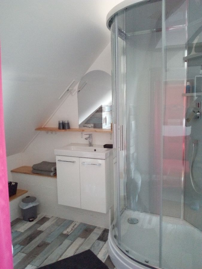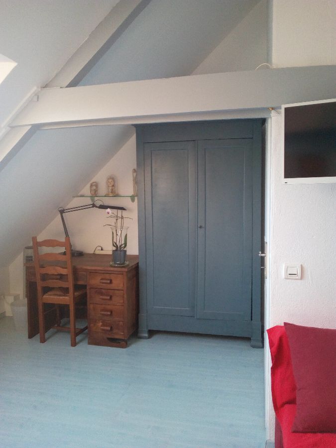 Nous vous recevons chez nous, notre maison est sur 3 niveaux, le dernier vous est réservé. La chambre dispose d'un lit en 160, tv, salle d'eau et wc. Vous disposez dans la chambre de quoi vous faire une boisson chaude.