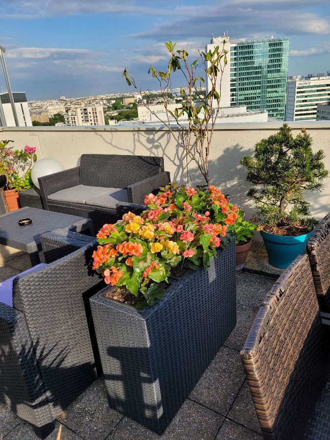 Le naturisme est tout à fait possible de surcroit par beau temps sur la terrasse située en étage élevée, vue sur tout Paris.