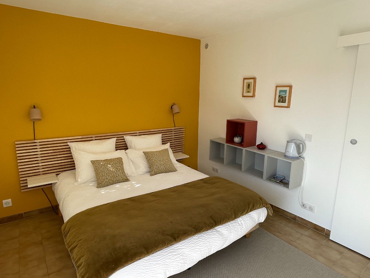 La chambre avec télévision et Wi-Fi gratuite bénéficie d’un accès indépendant et est équipée d’une salle d’eau privative avec sanitaire, douche et d’un lit 160 x 200 pour plus de confort. La température de la chambre reste agréable pendant les chauds mois d'été. La cigarette y compris électronique n'est pas autorisée dans la chambre.