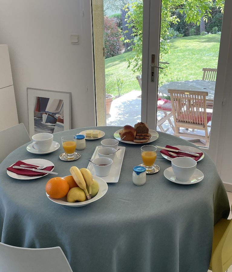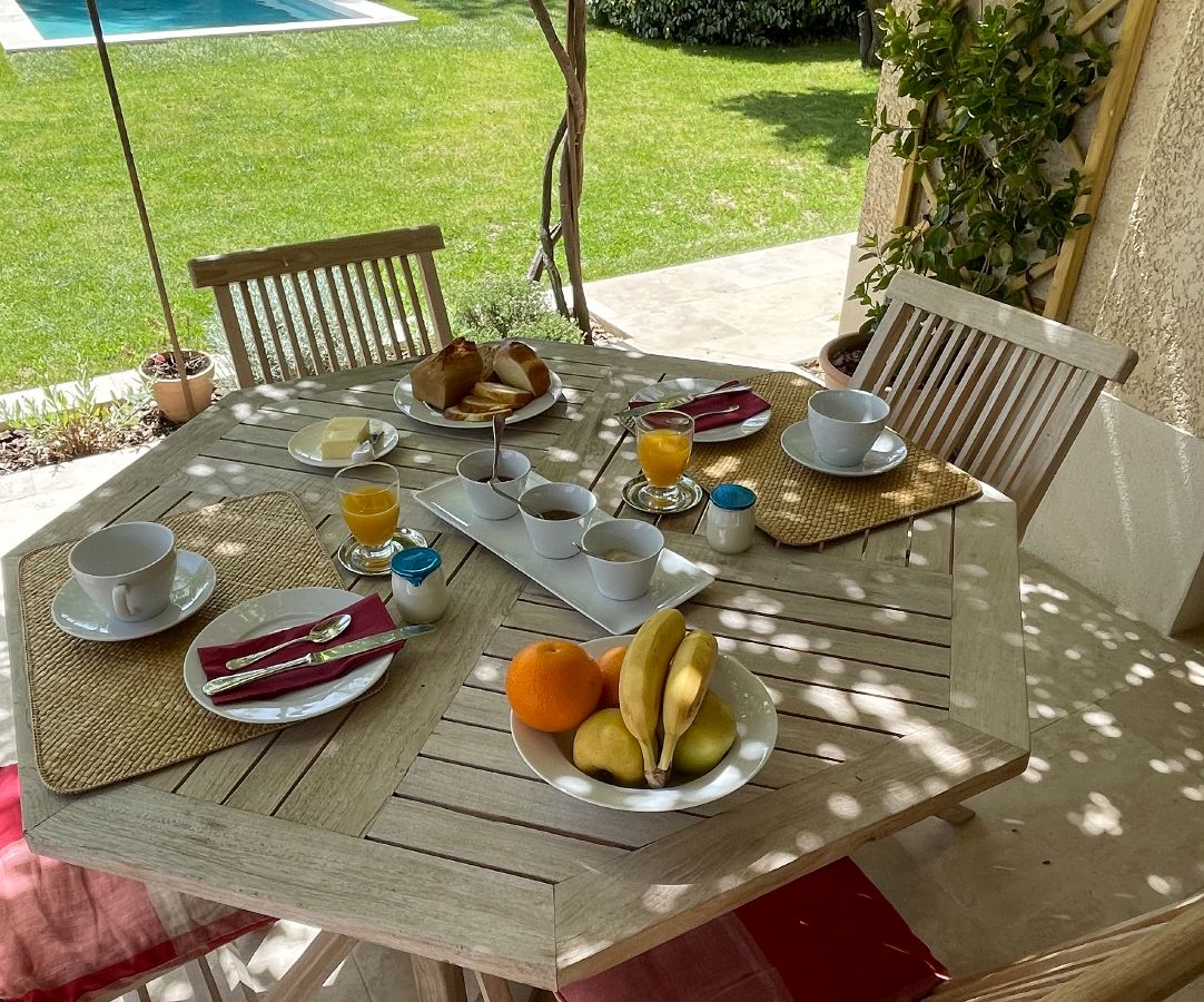 Les petits déjeuners sont servis dans la salle à manger ou sur la terrasse.