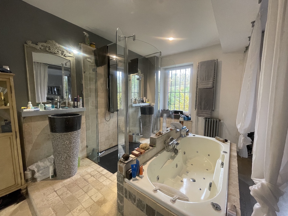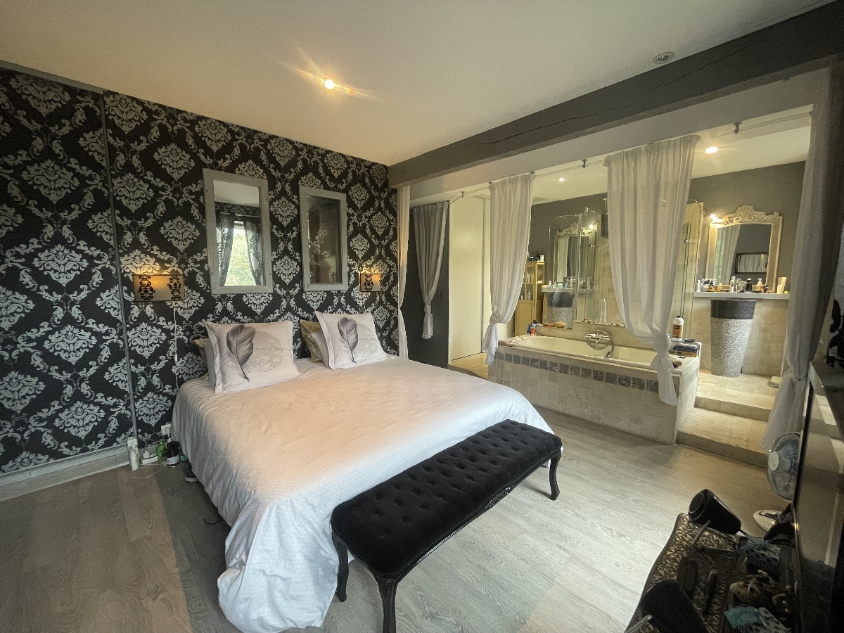 La propriété se compose de 6 chambres de 30 m2 en moyenne chacune étant équipée de sa propre salle de bain. Un grand salon véranda, une pièce à vivre de 63 m2 (salon, séjour, cuisine), un séjour avec une deuxième cuisine américaine de 46 m2 et un grand salon mansardé avec briques apparentes de 43 m2.