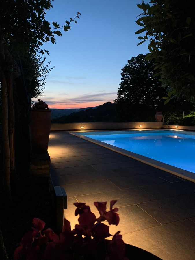 - Un appartement pour 4/6 personnes avec un salon accueillant et élégant au rez-de-chaussée, à côté se trouve une belle salle à manger d'où les clients peuvent accéder directement à la piscine et au jardin avec une vue enchanteresse sur la vallée d'en face, la cuisine moderne et spacieuse est équipée de tout ce dont vous avez besoin. Les chambres sont accessibles au premier étage par un ascenseur. Il y a 3 chambres doubles avec lits français et salle de bain privée, toutes équipées de la climatisation. La connexion Wi-Fi est disponible dans toute la maison et dans le jardin.
