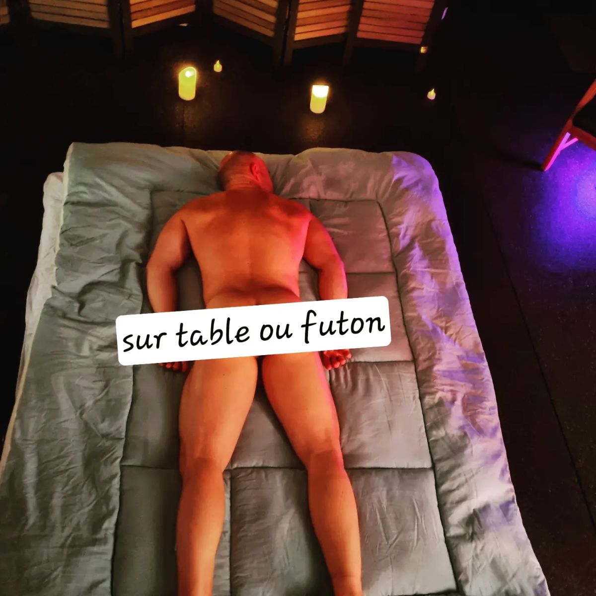 Masseur et massé, nus, il se pratique sur table avec un revêtement en vinyle, je vais glisser mes mains, sous votre corps puis dessus, Sensuel, envellopant , parfois ferme, c'est un massage complet, (le sexe n'est pas massé), un palier avant le Tantra sur futon