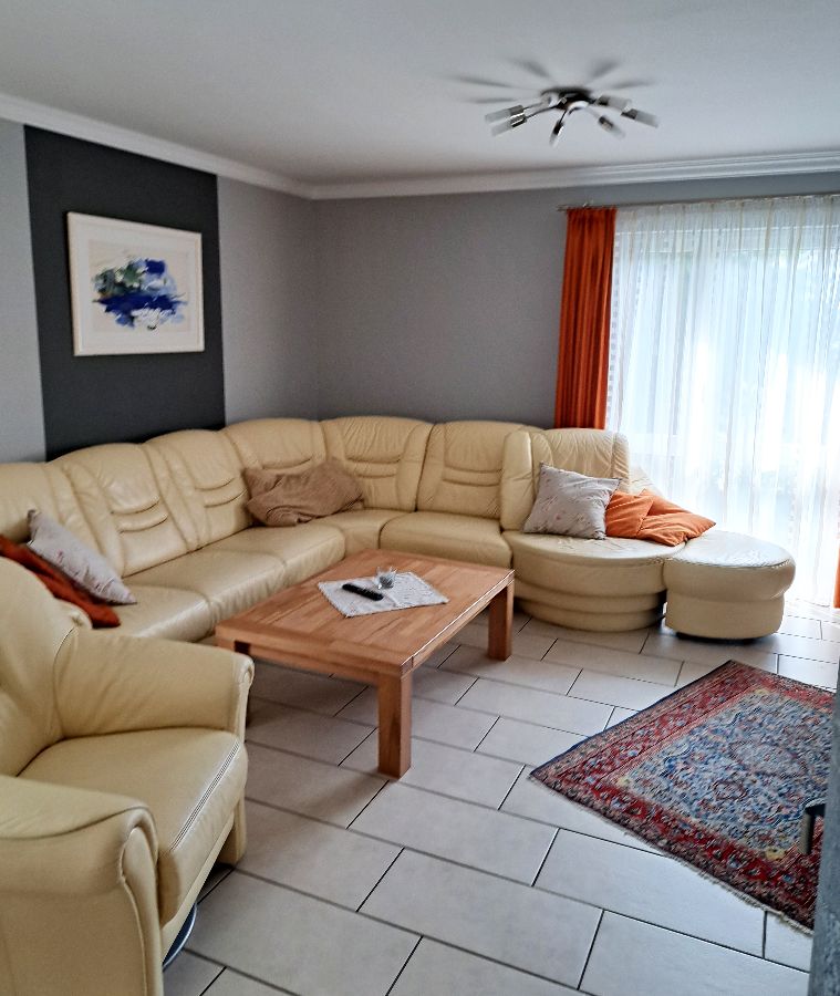 Le salon est de très bonne qualité et équipé d'un salon en cuir, télévision et un poêle