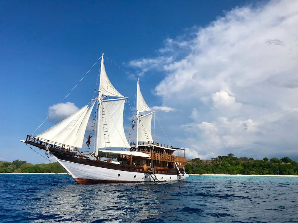 Le matin de notre départ, nous viendrons vous chercher à votre hôtel et vous conduirons au port. Après un jus de bienvenue rafraîchissant et une présentation de notre équipage, vous explorerez notre grand navire tout en bois connu sous le nom de « Pinisi ». Et puis, notre capitaine et notre équipage mettront les voiles.