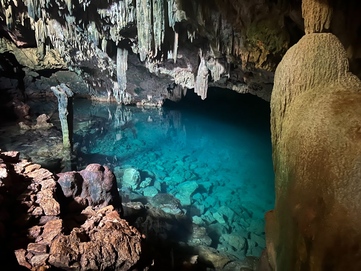 Nagez dans une grotte remplie de stalactites avec une eau turquoise à « température parfaite »