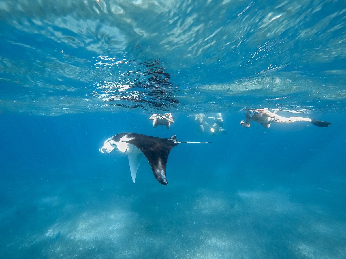 Faites de la plongée avec tuba avec des raies manta qui glissent paisiblement et de magnifiques tortues marines