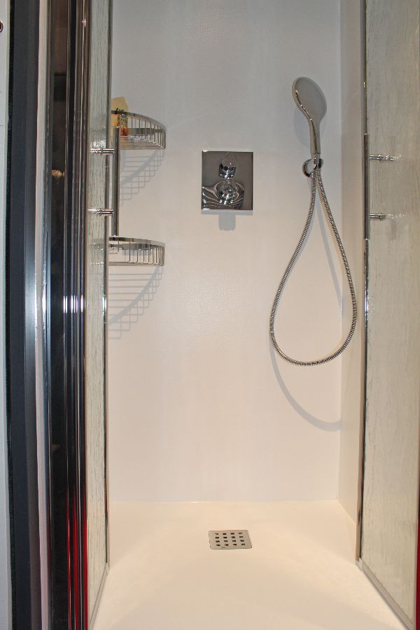 Une douche avec drap de bain et peignoir sont à votre disposition