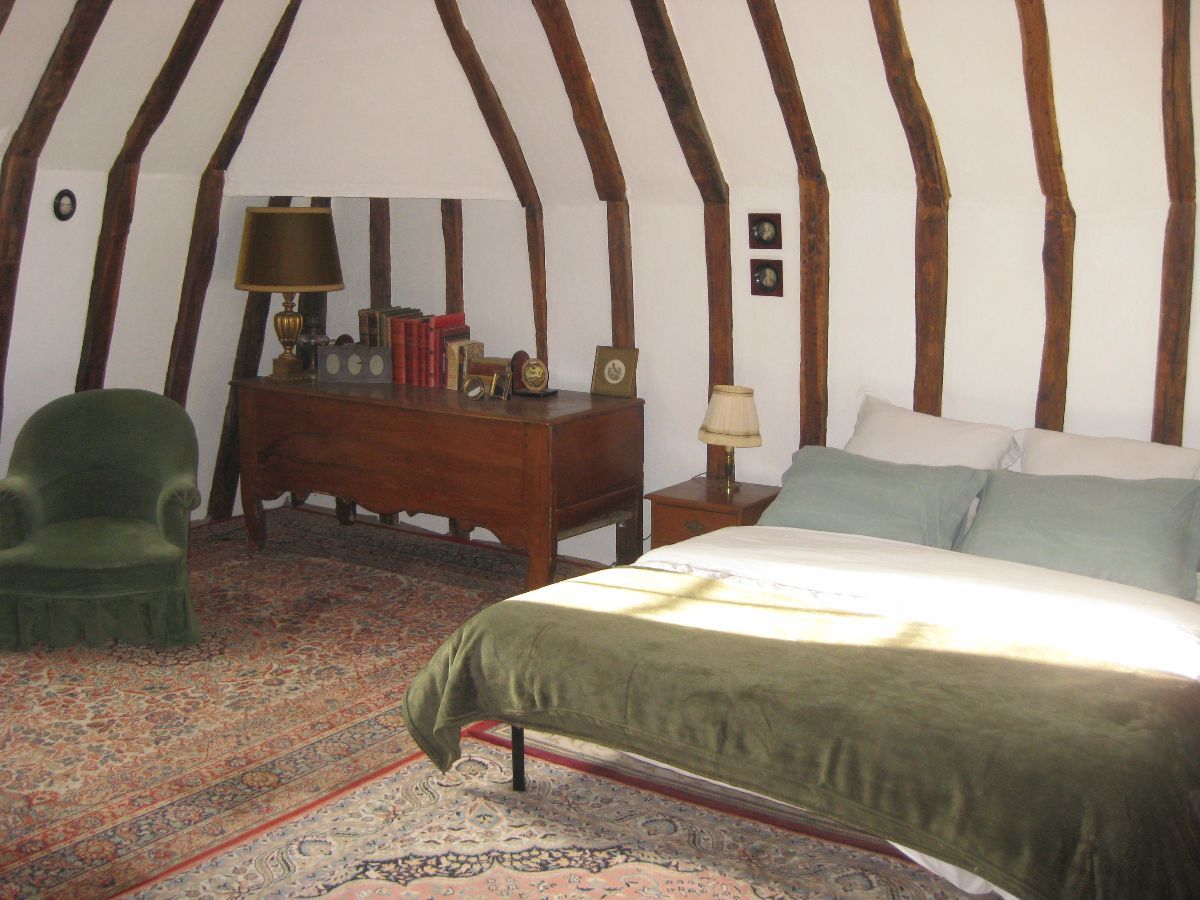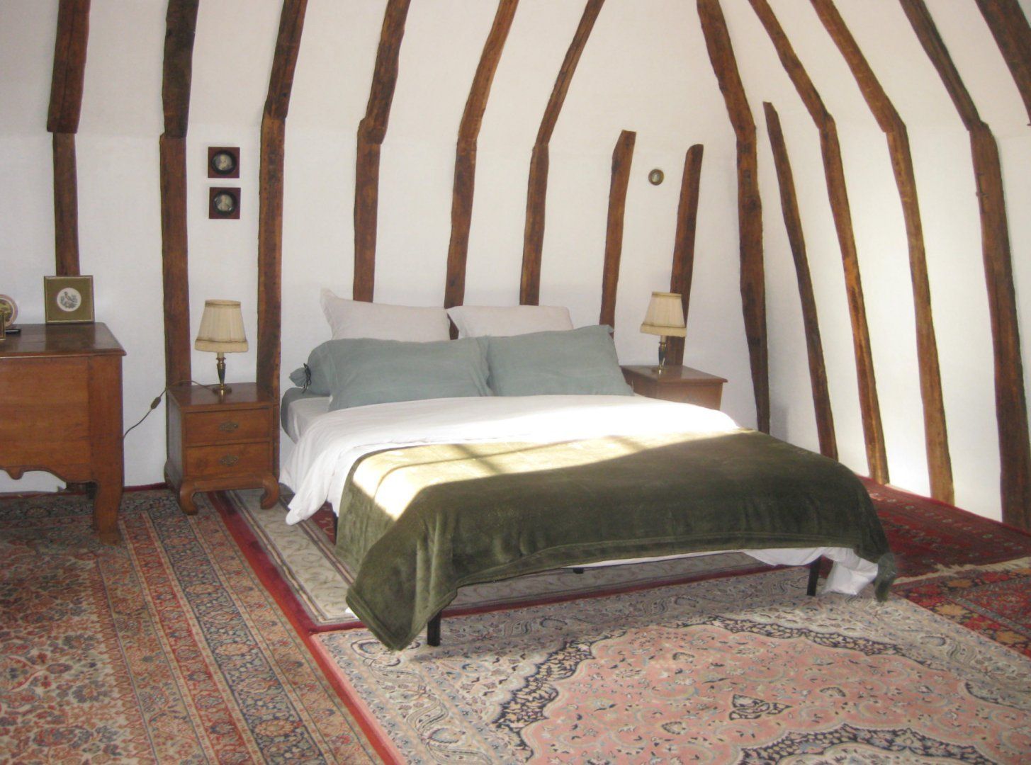 La Mansarde située au 1er étage (35m2) lit 160x200 cm, coin bureau wifi, sa salle d'eau et ses toilettes privatives.
