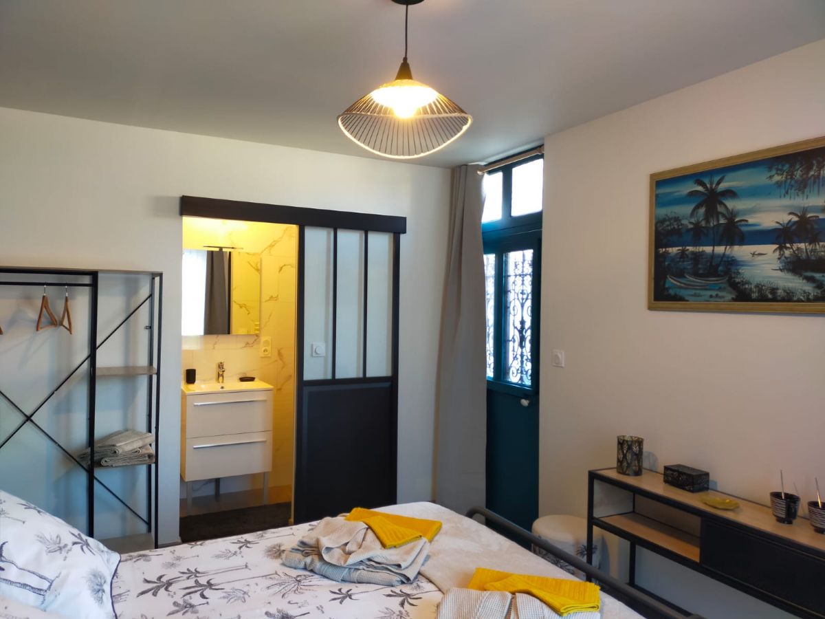 "L'Annexe" dépendance nouvellement rénovée et décorée avec soin, disposant d'un lit de 140 cm, d'une salle de bain privative, de rangement, de serviettes de toilette de peignoirs pour le spa et d'un nécessaire pour café ou thé et d'une connexion wifi gratuite.