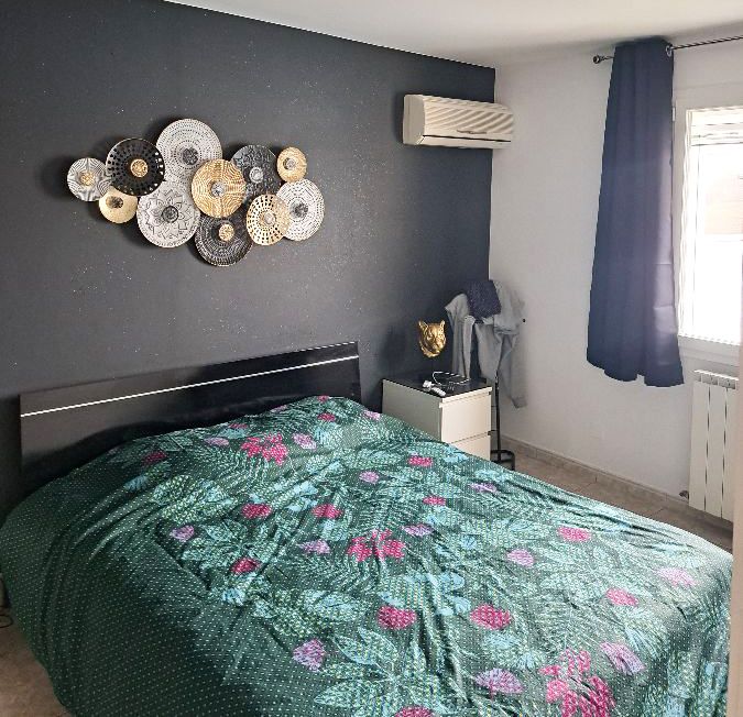 Chambre d'hôtes avec lit double. salle de bain et toilettes communes.