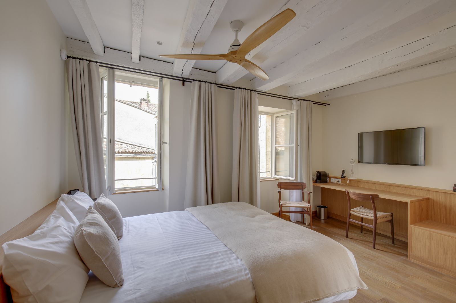 Notre hôtel 4 étoiles est authentique car créé en 2021, il a gardé le charme de la pierre et l'architecte a utilisé des matériaux nobles (parquet en chêne,...)