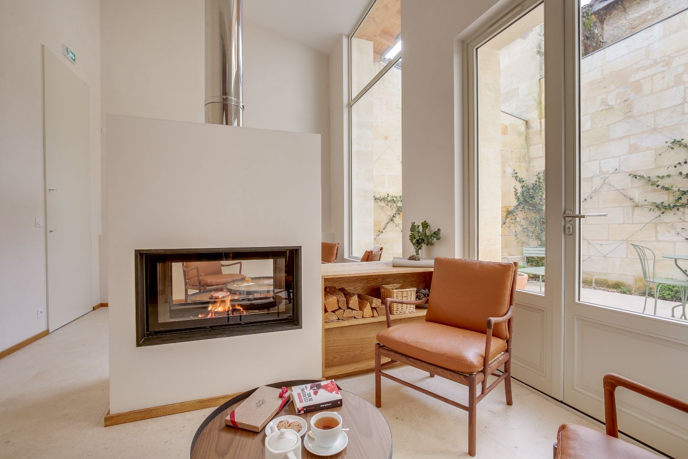Un espace salon pour se détendre Un patio amenant verdure et lumière