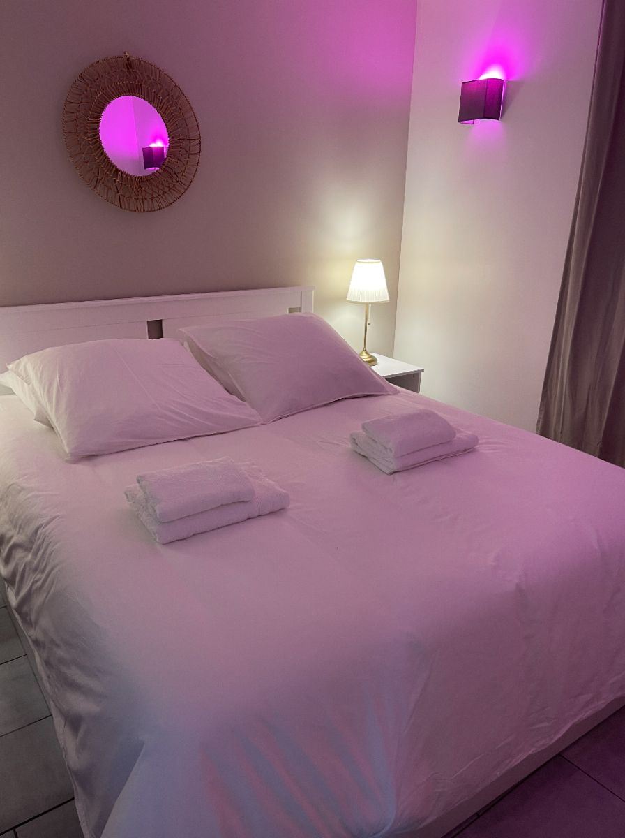 - Une chambre avec un lit de 160, votre coin douche et WC, un coin bureau pour le télétravail (Wifi gratuit)