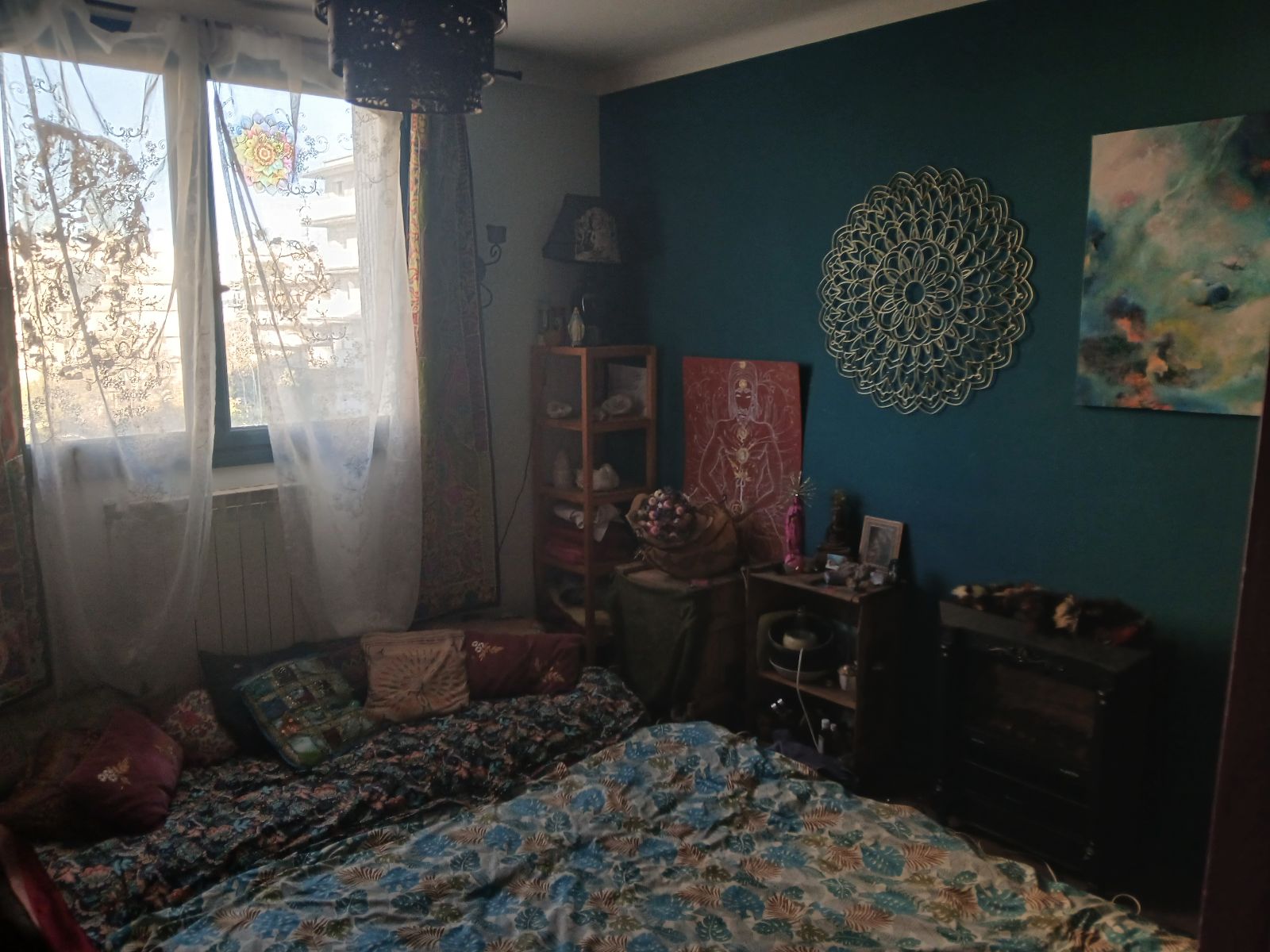 Une autre chambre avec un futon posé au sol de 200. Très agréable pour avoir de l'espace pour dormir, faire une sieste ou des pratiques corporelles type yoga, relaxation, massage etc.