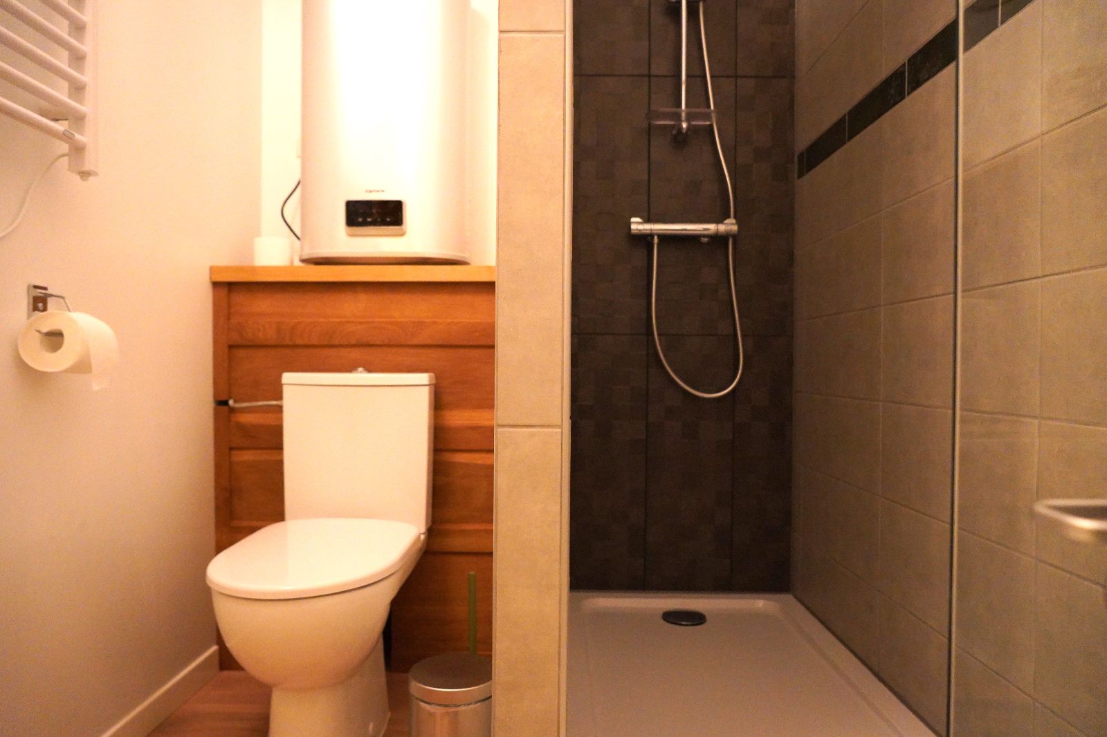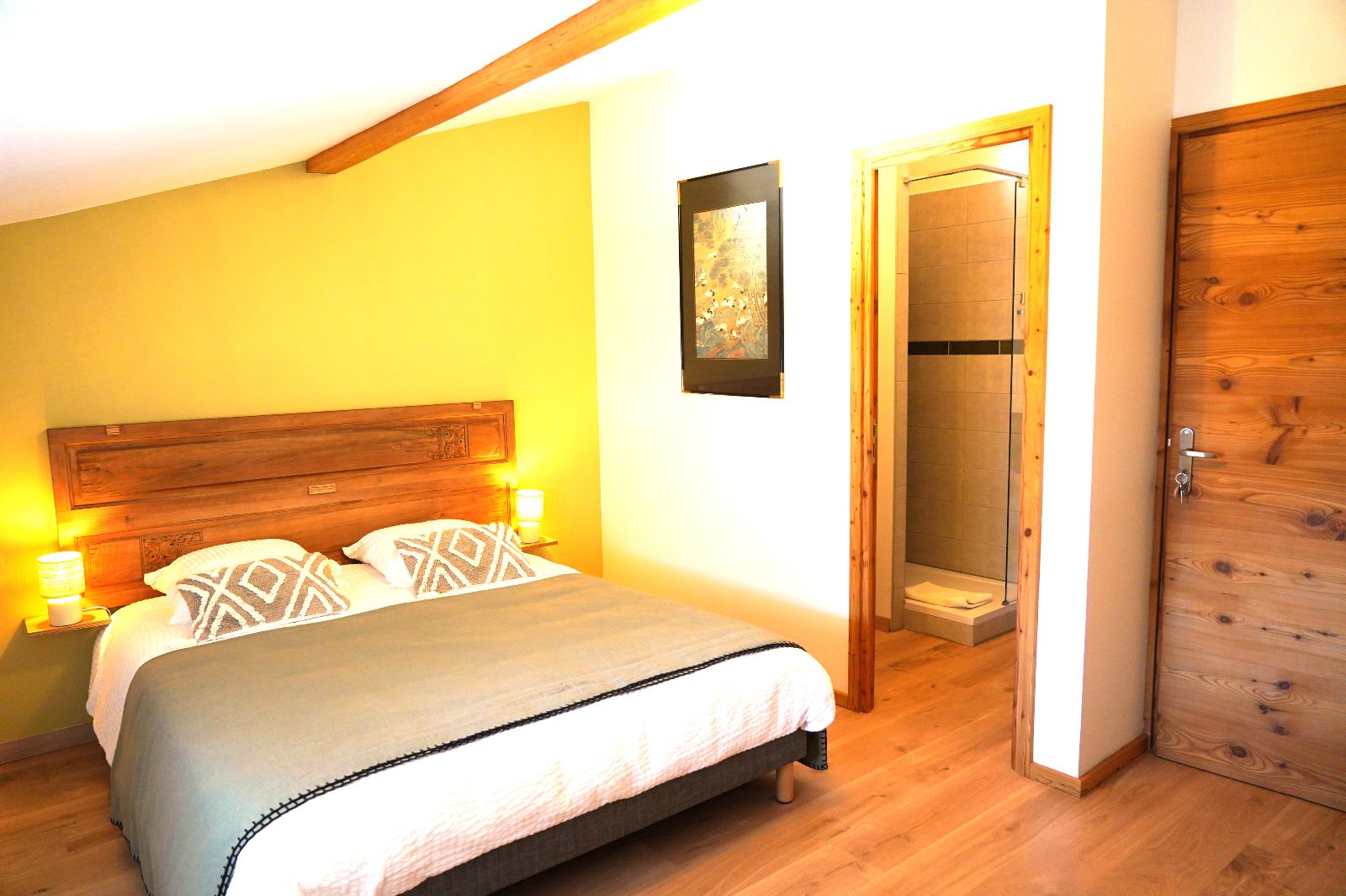La chambre RELAX, 18 m² pour deux personnes équipée d’un lit double de 160 cm et d’une salle de bain avec douche et WC.