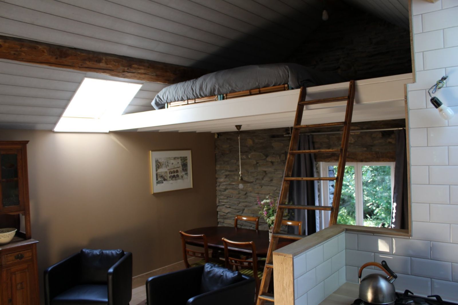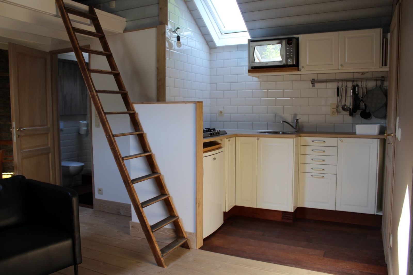 Au 1er étage avec sa propre entrée : Séjour avec cuisine ouverte / Mezzanine avec lit double (160 cm)