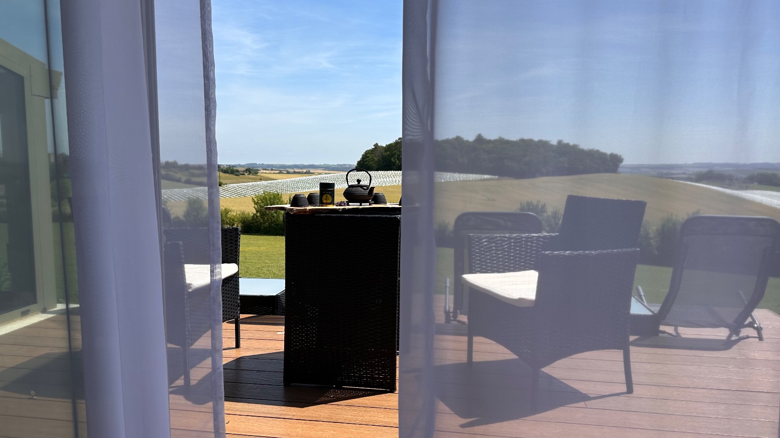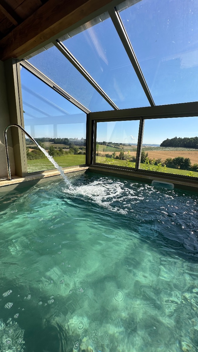 - D’un deck de repos s’ouvrant sur la campagne gersoise