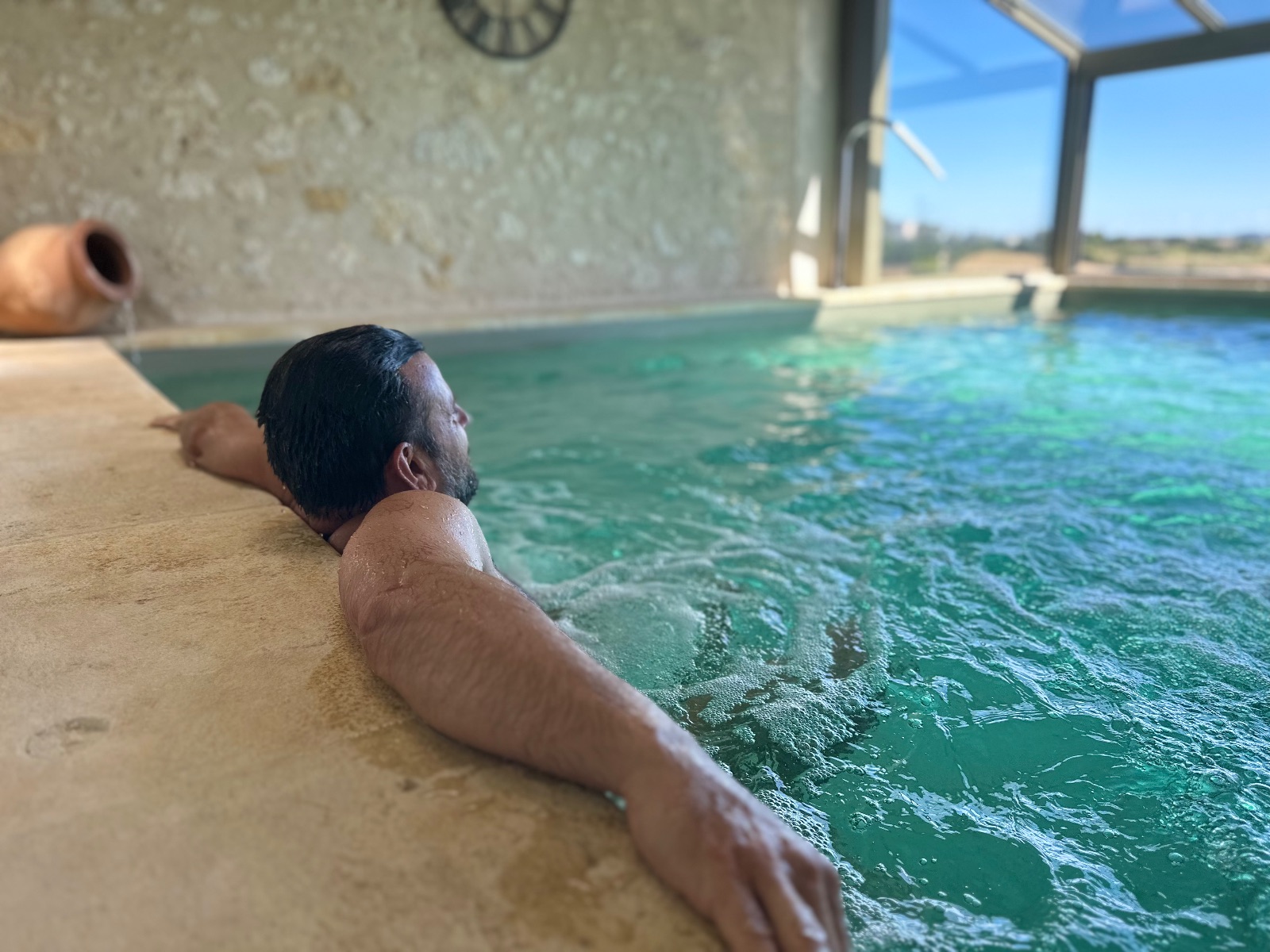 - D’un bassin d’eau entre 28°& 32° chauffée par une pompe à chaleur afin de maintenir une eau à température agréable