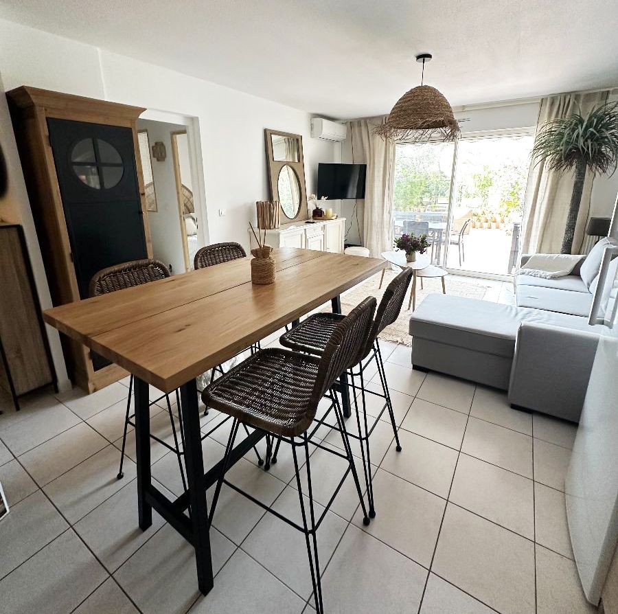 Charmant appartement en rez de jardin entièrement rénové dans lequel vous vous sentirez comme chez vous. Climatisé et au calme dans une résidence sécurisée avev un parking privé. Entièrement équipé et disposant de 2 chambres en enfilade avec 2 lits en 160 et 140 cm. A seulement 10 minutes à pied des plages et 20 minutes du port de Sanary.(élu plus beau marché de France). Iles des Embiez et calanques à proximité.ainsi quele port de plaisance. Toutes les commodités, restaurants, boulangerie, primeur et supermarché à 5 minutes à pied.