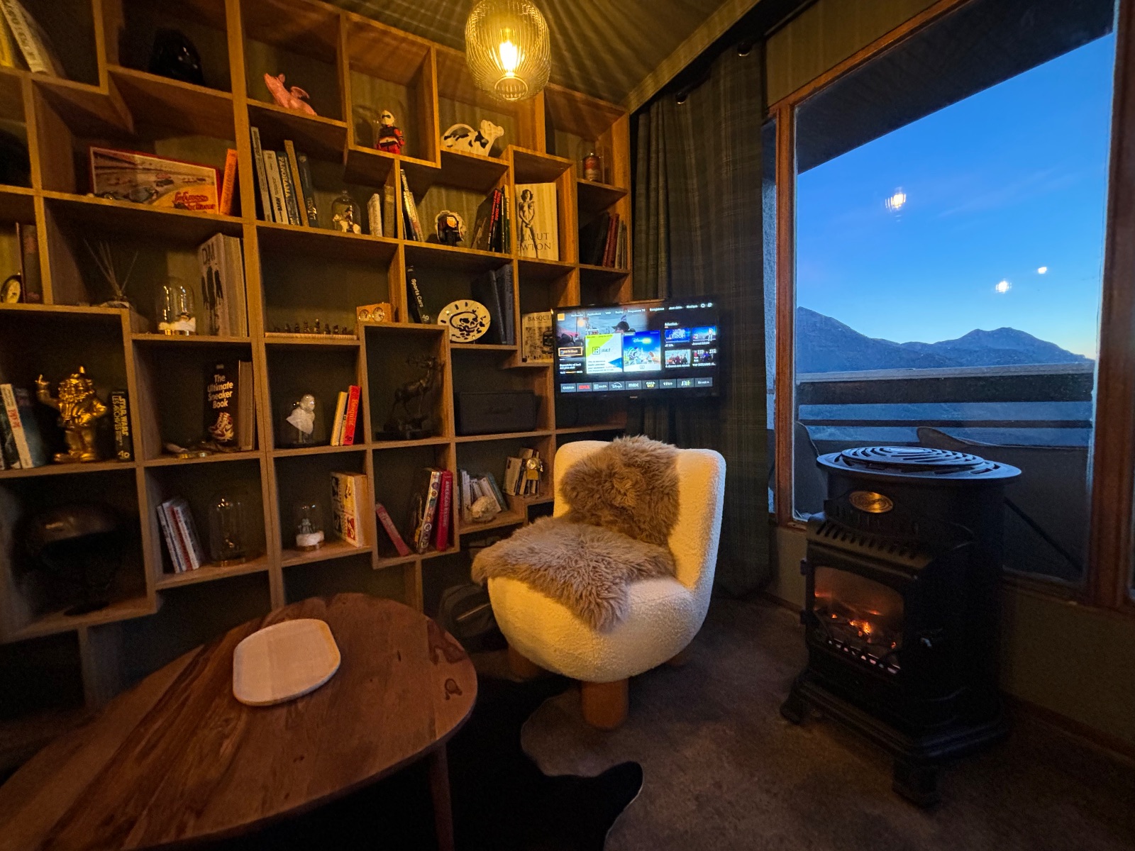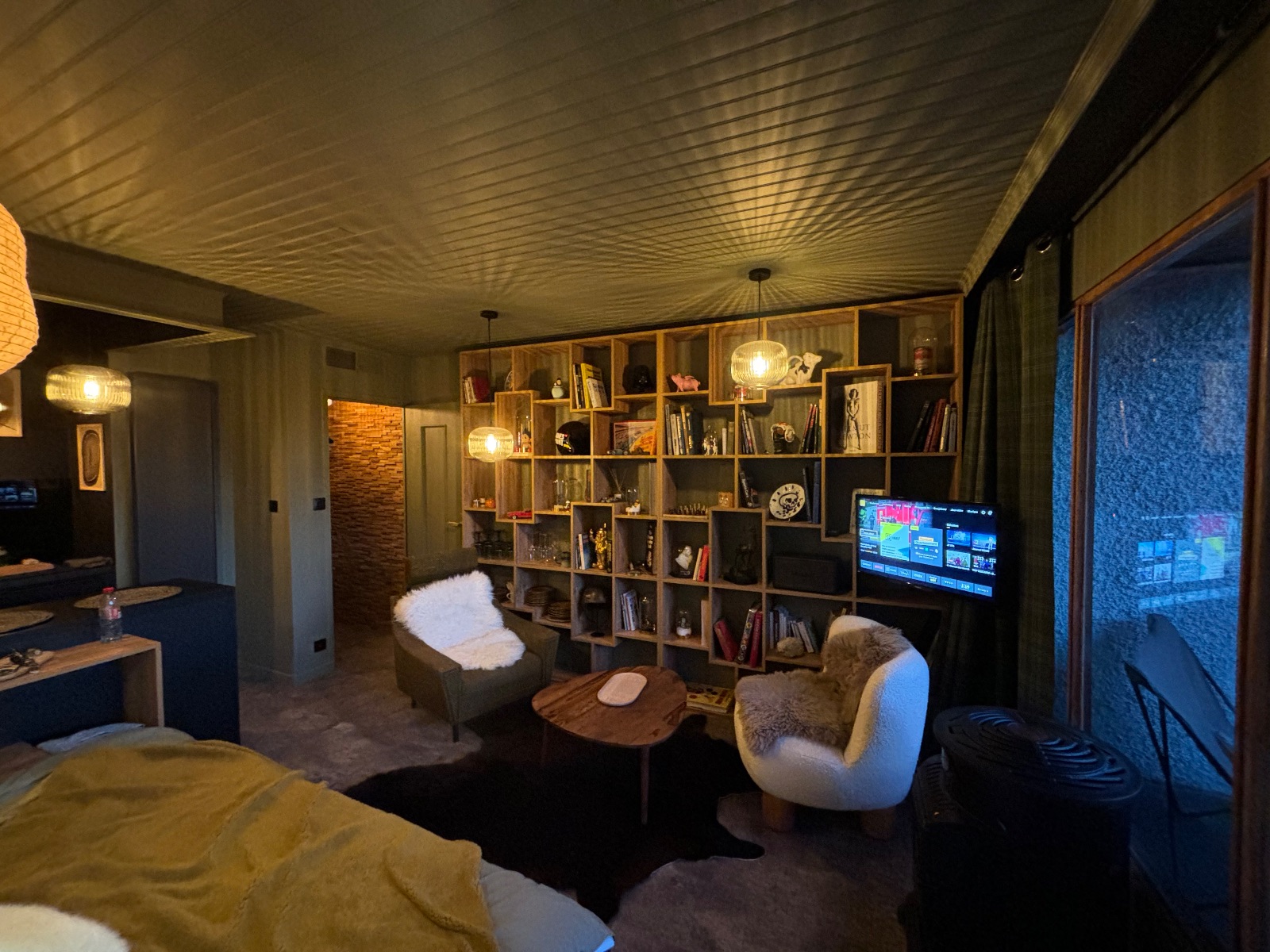 La décoration élégante et chaleureuse vous permettra de vous détendre dans les fauteuils confortables du salon de lecture / bibliothèque au coin du poêle en fonte (fonctionnant au gaz pour plus de sécurité) en écoutant votre playlist sur un dispositif sonore Marshall haut de gamme à votre disposition.