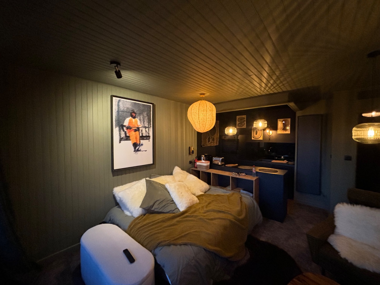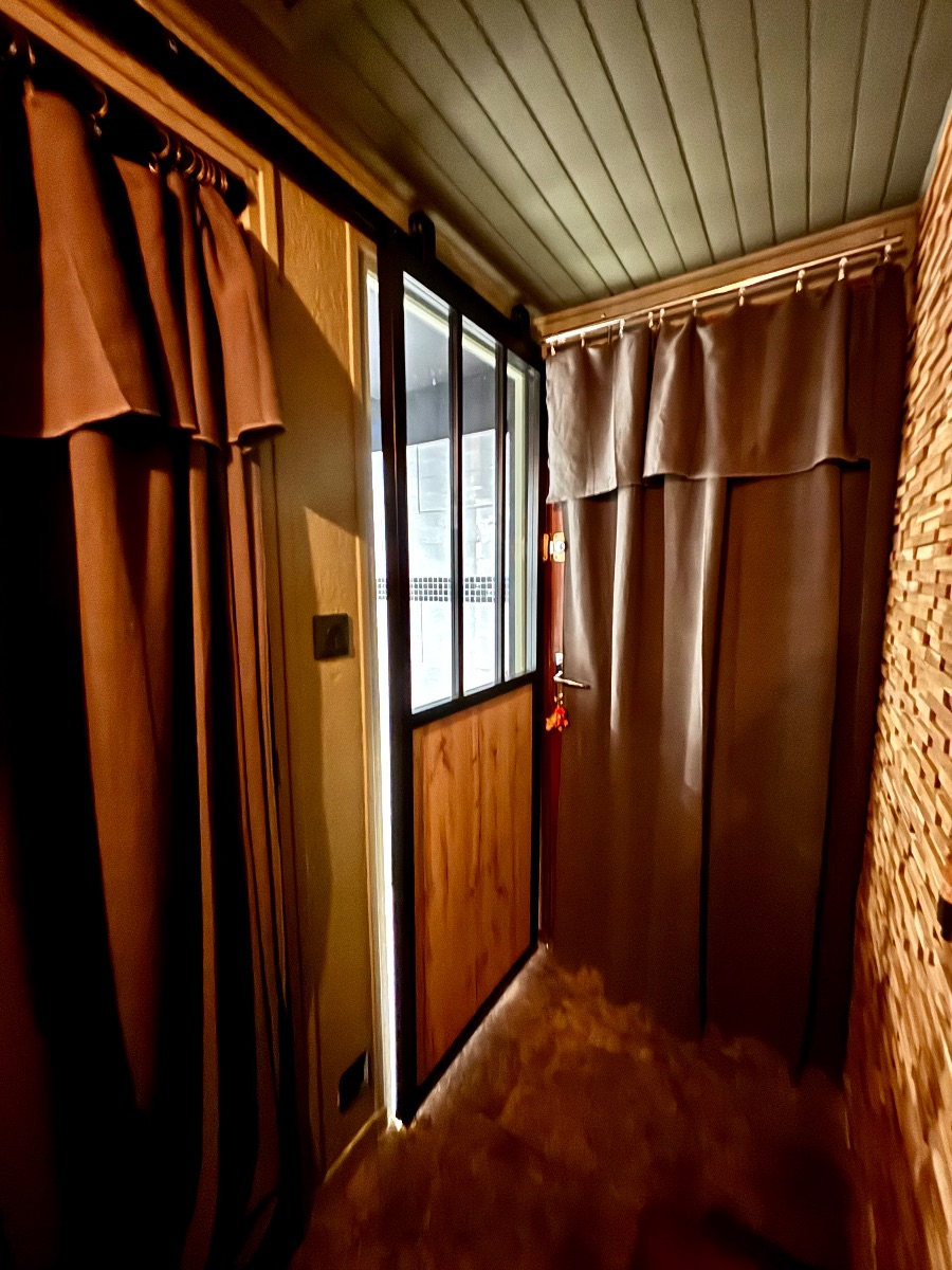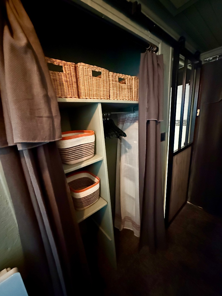 Le lit en 160 neuf est équipé d’un matelas EMMA (pour les connaisseurs) vous assurant des nuits parfaitement sereines et un sommeil réparateur grâce a d’épais rideaux occultants.